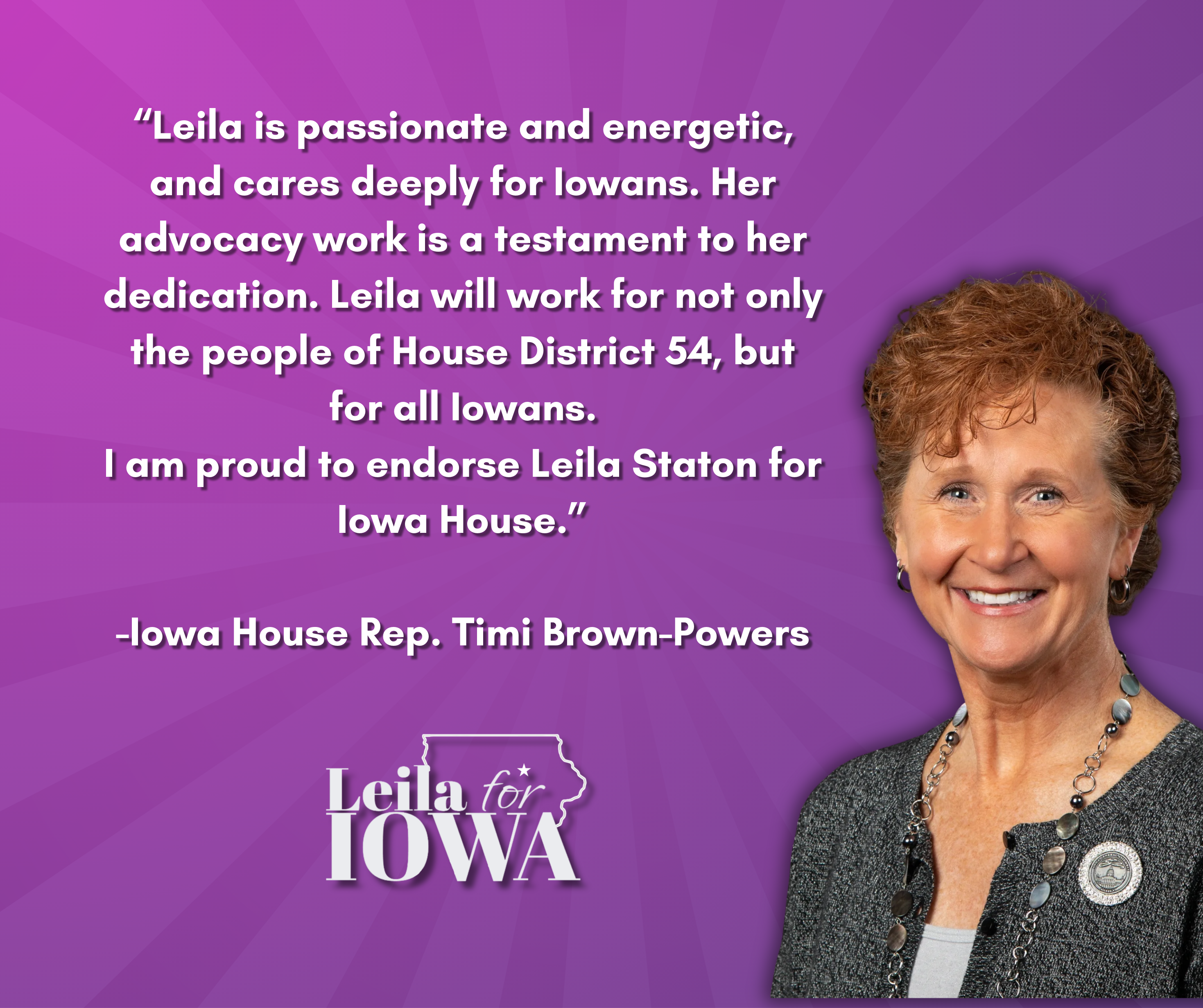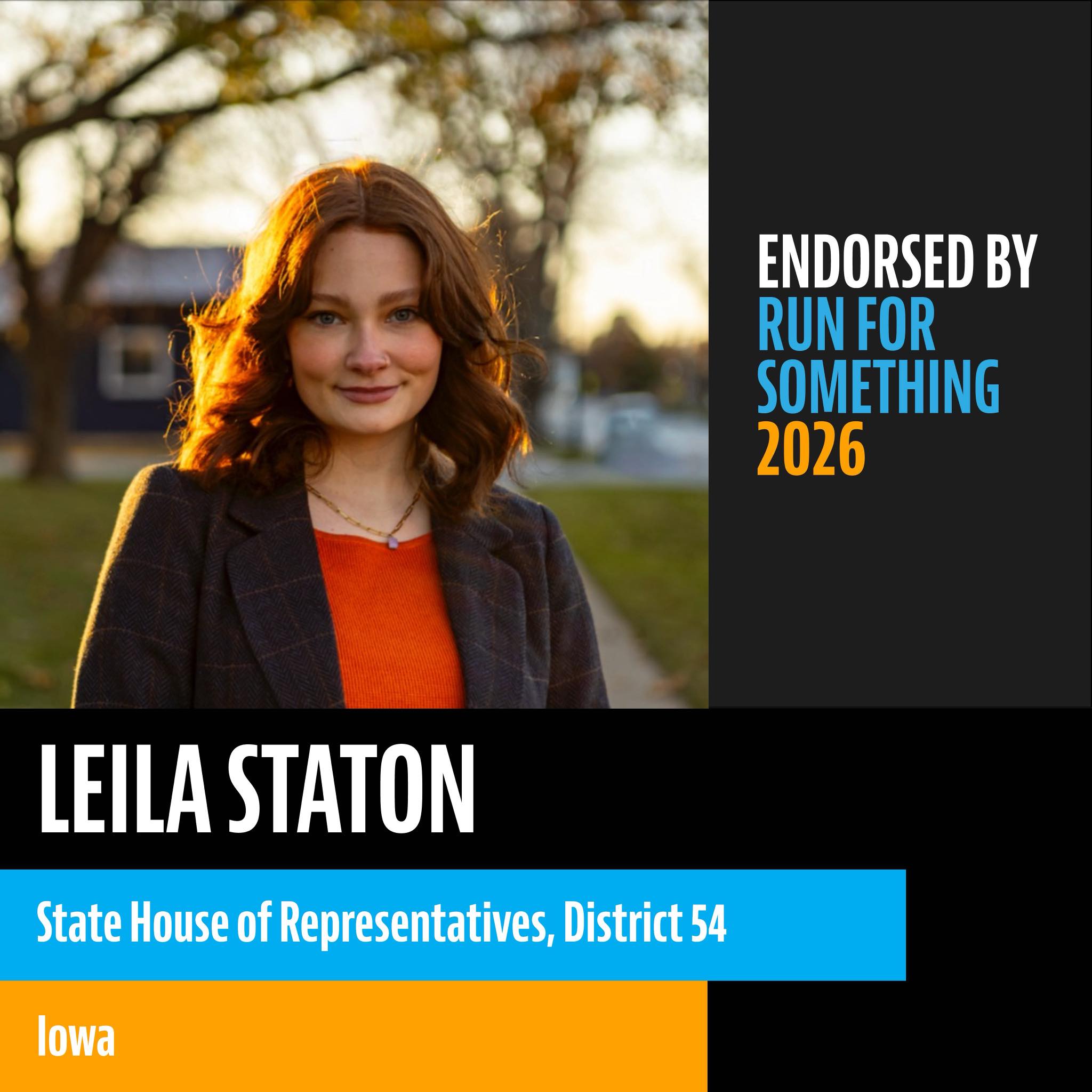 My name is Leila Staton, and I am running to represent us in the Iowa House of Representatives for DIstrict 54!